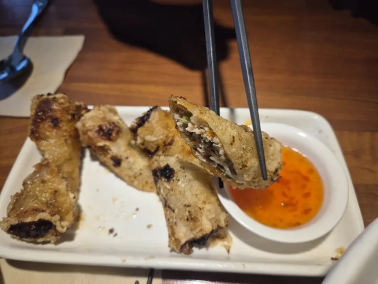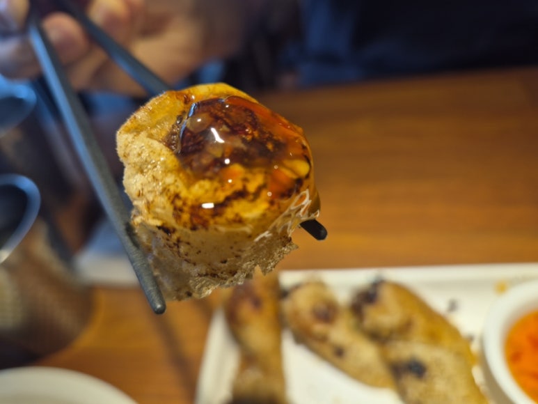 I’ve always been a fan of spring rolls, but the Jjajo here is in a league of its own. The exterior is incredibly crispy—a satisfying “crunch” that echoes through the table. When dipped into the sweet chili sauce, the harmony of spicy, sweet, and crispy textures is simply divine. This is a must-order.
