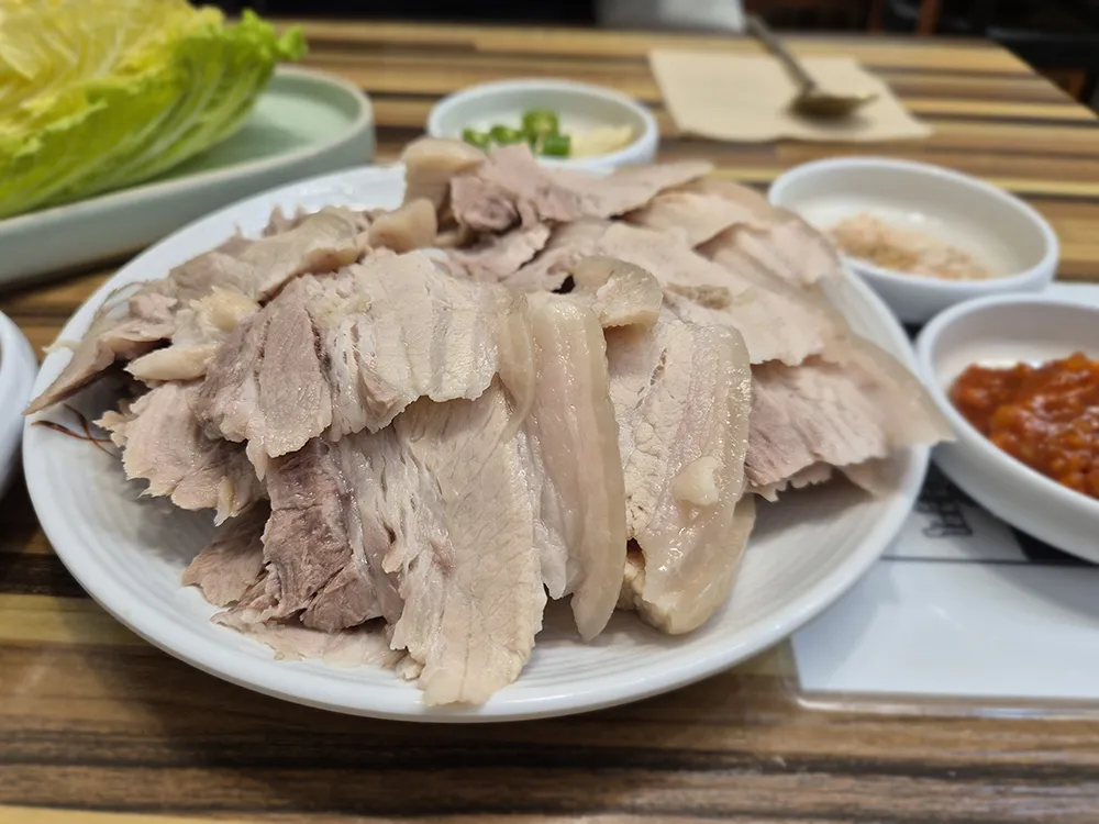 Here is the ultimate insider tip: when you order the Bossam, you can add a bowl of Namhae Anchovy Kalguksu for just 5,000 KRW. Don’t let the low price fool you; this is a massive, premium bowl of noodles.