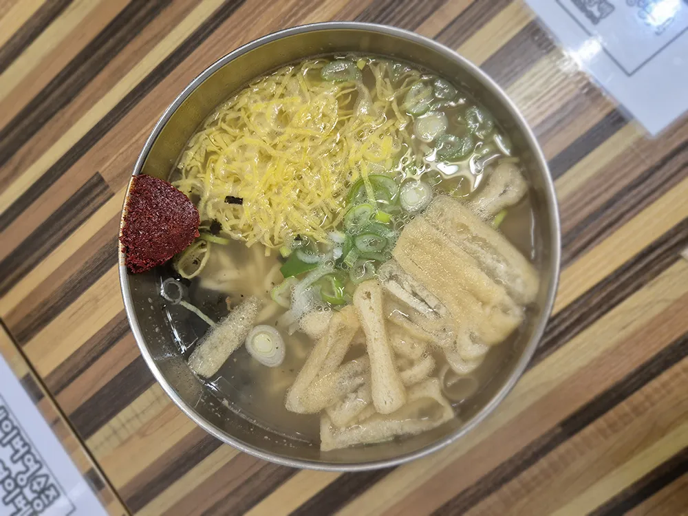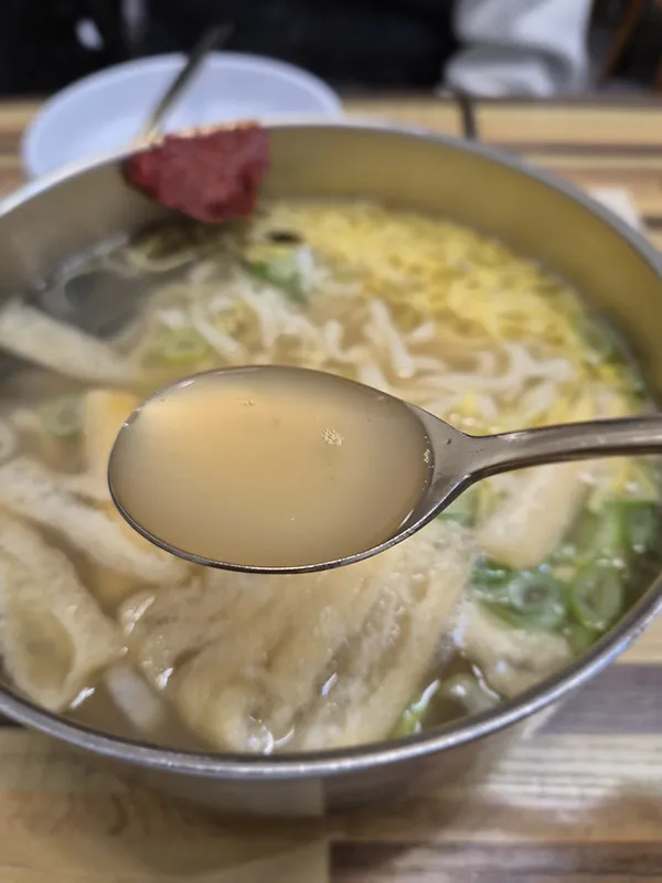 The broth is a deep, concentrated essence of premium Namhae anchovies—clean, oceanic, and profoundly restorative. The noodles have a fantastic springy bite, absorbing the savory umami of the soup. Pairing this hot, clean broth with the rich, fatty pork creates a rhythmic harmony that recharges your body from the inside out. In a city of rising prices, this combination is a rare, beautiful win for both your palate and your wallet.